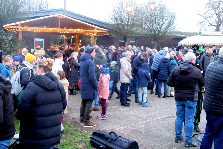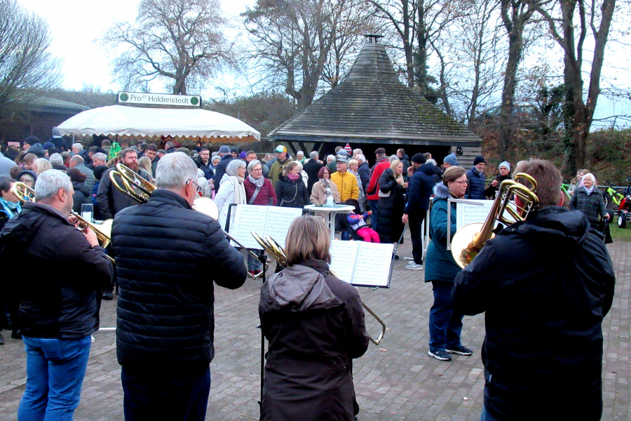Als der Posaunenchor Holdenstedt und die Schüler der Grundschule Holdenstedt dem Weihnachtsmarkt einen feierlichen musikalischen Rahmen gaben, war auf dem Weihnachtsmarkt kaum noch ein Durchkommen.