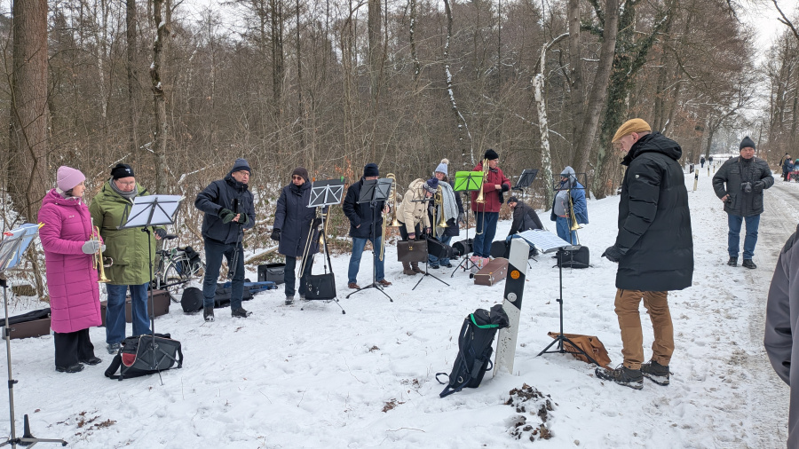Zum ersten Mal in der Geschichte der Teichwette floss diesmal kein Wasser durch den Überlauf. Fast 100 Bürger waren gekommen, um bei der 5. Holdenstedter Teichwette dabei zu sein. Der Posaunenchor Holdenstedt war mit 12 Bläsern gekommen, um bei eisiger Kälte mehrere flotte Lieder zum Besten zu geben. Ortsbürgermeister Michael Burmeister als "Notar" und Jürgen Fischbeck als "Teichgraf" mühten sich am zugefrohrenen Teich um ein gerechtes Messergebnis. 96 Bürger hatten insgesamt gewettet und ca. ein Drittel hatten das richtige Ergebnis "nicht übergelaufen" getippt. Die Gewinne, gespendet vom Frischmarkt Schwutke, Autohaus Hoffmann und Pro Holdenstedt, wurden wegen dem Brand am Sportplatz, dann am kleinen Kreisel ausgelost. Hier gab es nach der Siegerehrung auch Bratwurst, Glühwein und Kaltgetränke.