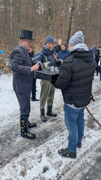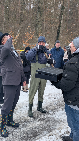 Am 2. Februar war es so weit. Der erfahrene Notar Burmeister vereidigte Benjamin Zasendorf zu seinem Teichassistenten. Die verschiedenen Tests überzeugten den Notar jedoch nicht, so dass der sich schließlich höchst persönlich per Barfußtest vom überlaufenden Teich überzeugte. Zu diesem launigen Spektakel waren rund einhundert Holdenstedter gekommen. Anschließend wurden die 13 Preise im Gesamtwert von mehr als dreihundert Euro unter den Wettteilnehmern auf dem Holdenstedter Sportplatz verlost. Bei Bratwurst, sowie Kalt- und Warmgetränken wurde noch intensiv über die vermutete Sabotage am Wasserstand gefachsimpelt. Alles in allem eine schöne Veranstaltung. Pro Holdenstedt bedankt sich bei den Akteuren und Gästen und ganz besonders bei Butz für die Organisation!