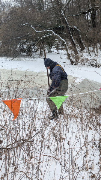 Die Wette lautete: Ist der untere Teich am 5. Februar 2023 bis zum oberen Rand des Stauwerkes gefüllt oder ist er es nicht?